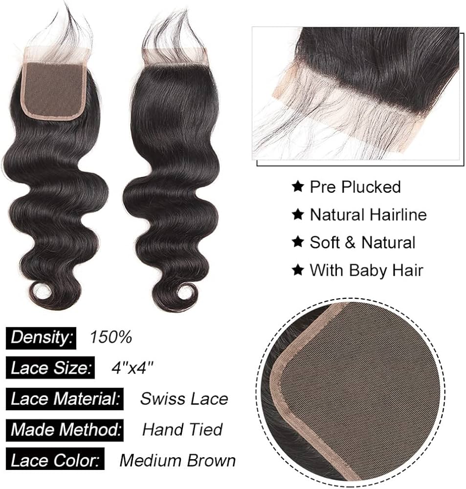 Amazon Com Human Hair Bundles With Closure 22 24 26 20 Free Part Body Wave Bundles With Lace Closure Brazilian Human Hair Weave Bundles With Closure Virgin Hair Weft 150 Density Natural Color
