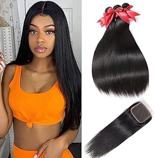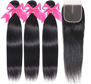 Straight Hair Bundles With Closure 20 22 24 18 Closure 100 Brazilian Straight Virgin Hair 3 Bundles With Lace Closure Free Part Human Hair Extensions Natural Black Color Black Hair Information
